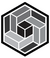 Black, white, and gray 3D geometric cube with interconnected rectangular and square shapes arranged in an isometric view